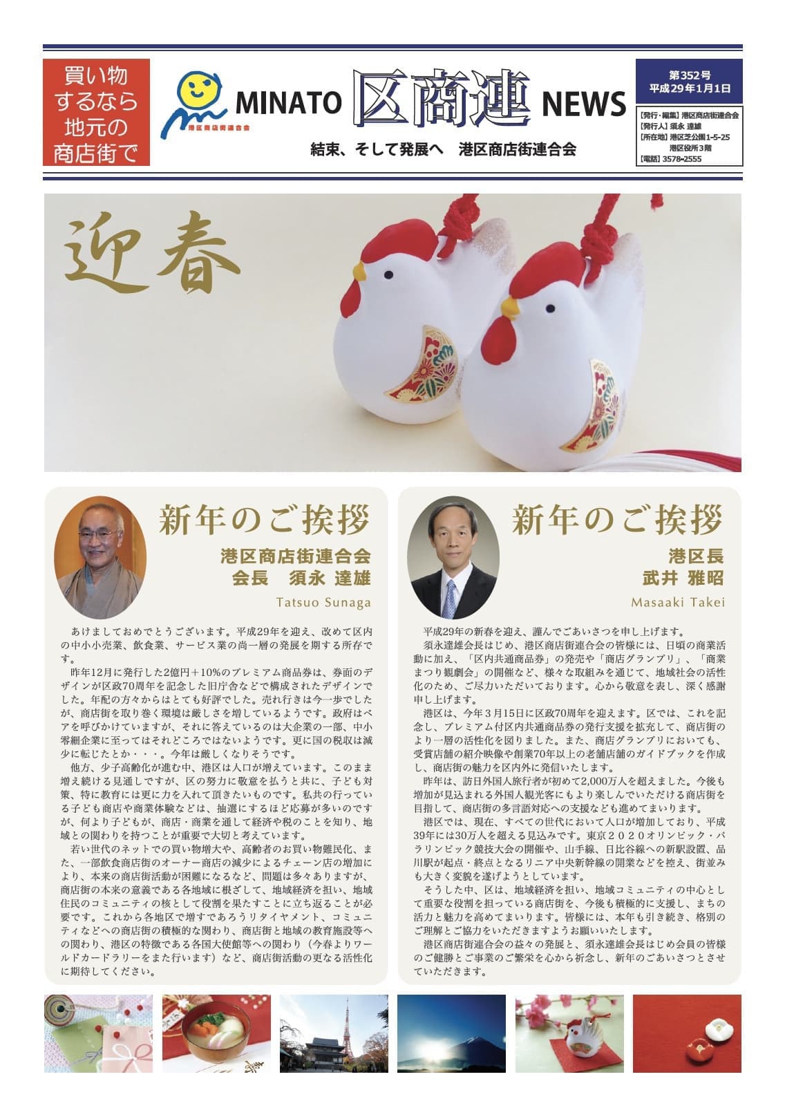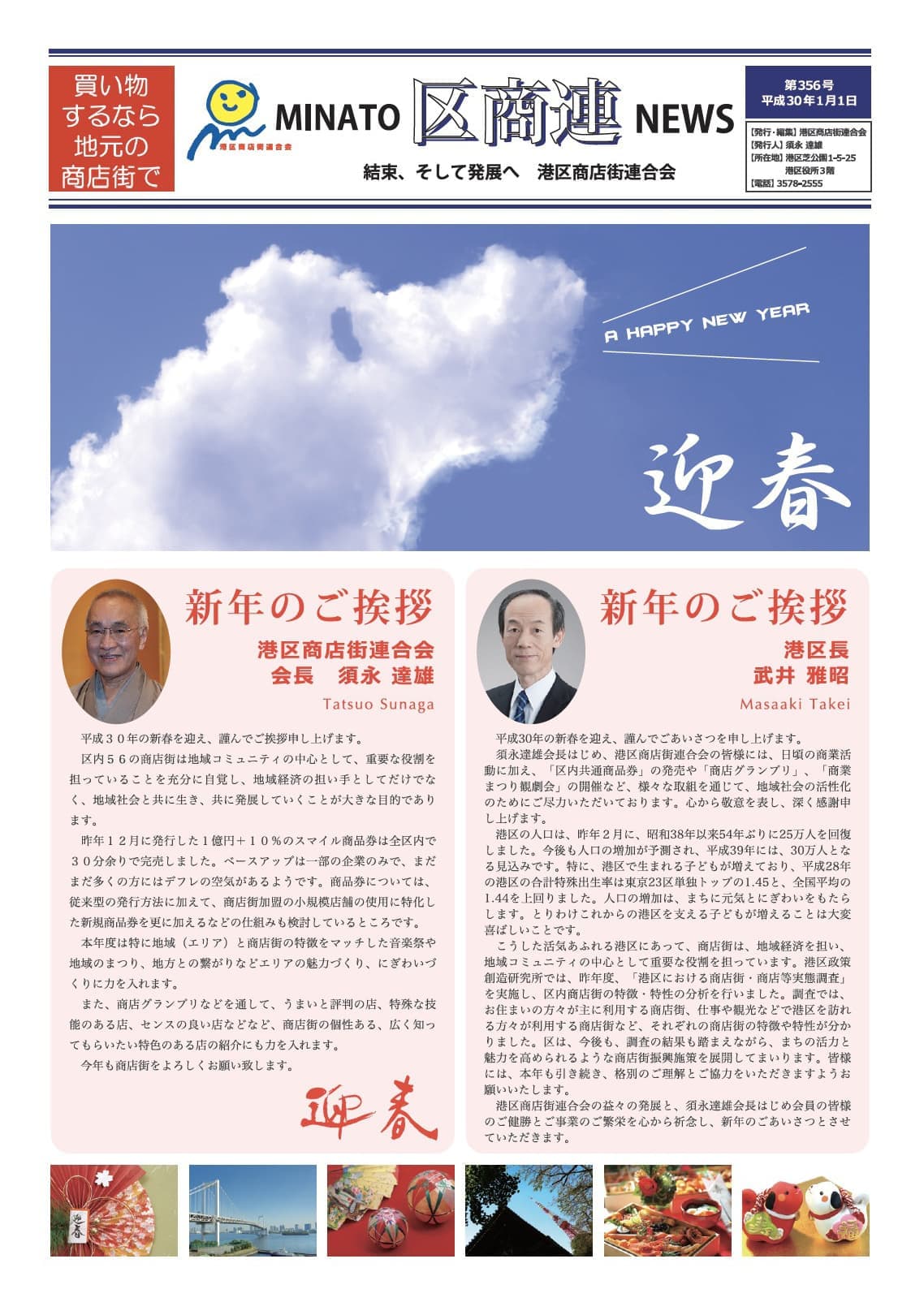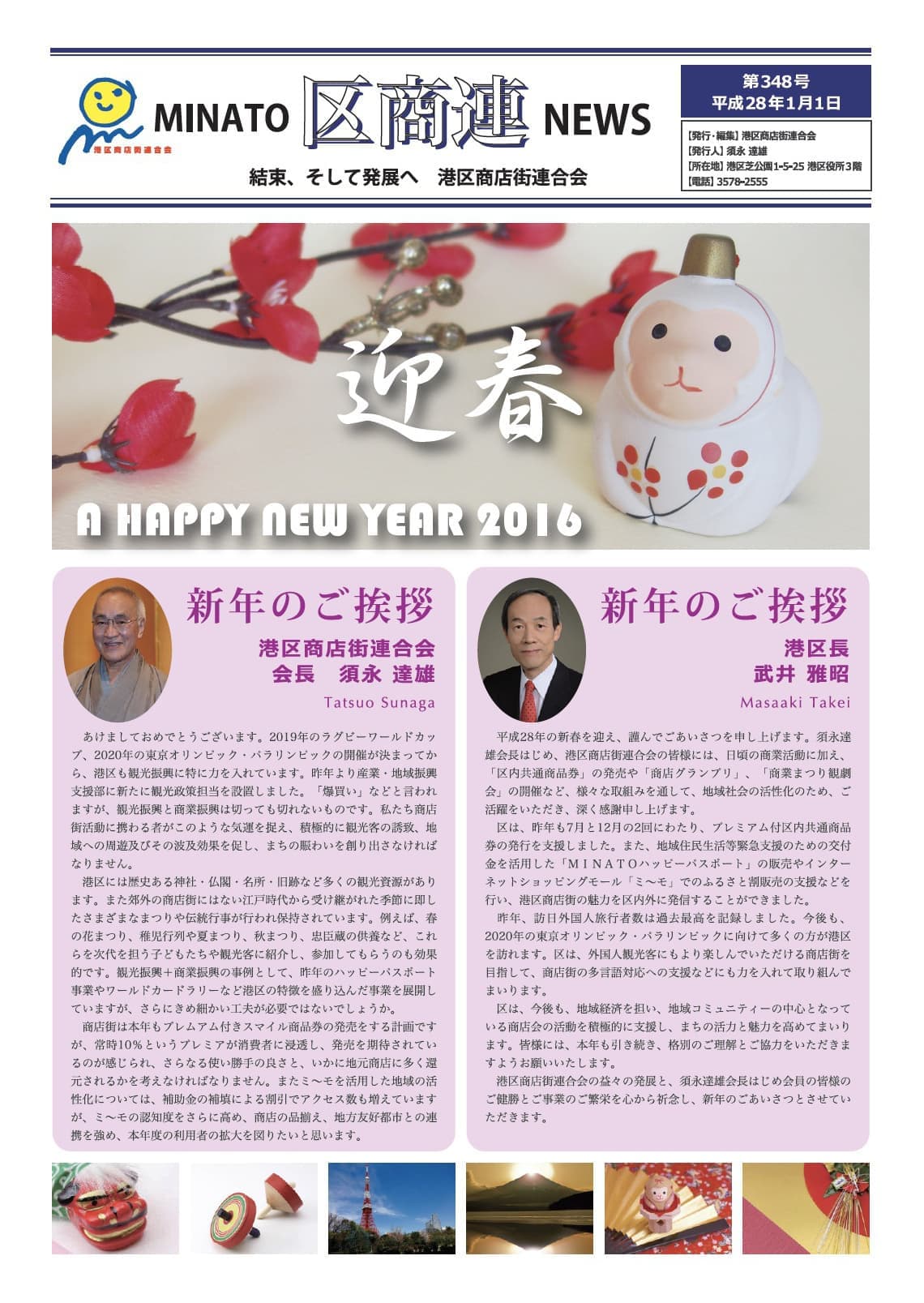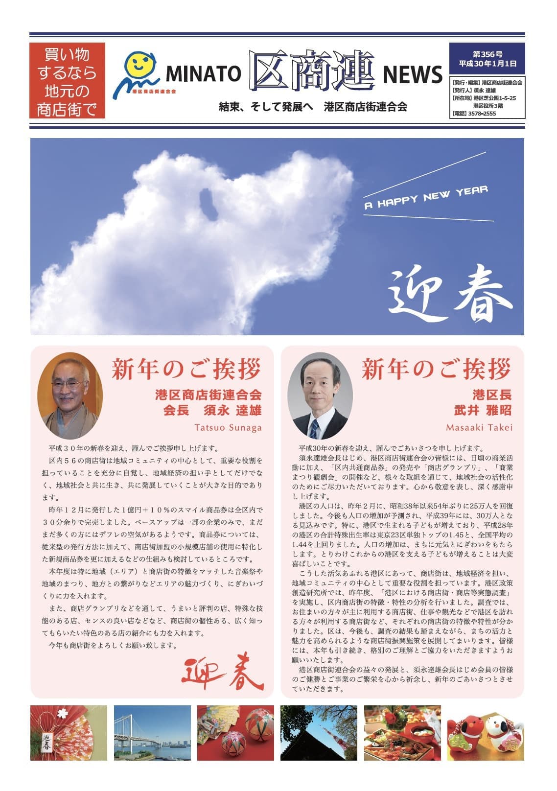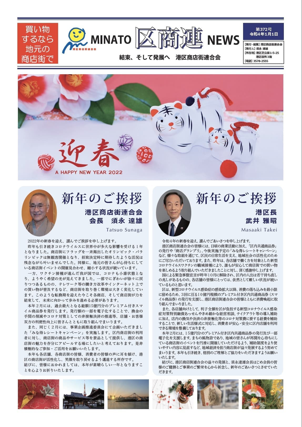 みなと区商連ニュース みなと区商連ニュースは、港区商店街連合会が年3回発行しているコミュニティ誌です。港区商店街連合会の活動をはじめ、各商店会のイベント情報やトピックスなどを掲載しています。 vol.384 2025年6月30日発行 ダウンロード vol.383 2025年1月1日発行 ダウンロード vol.382 2024年10月31日発行 ダウンロード vol.381 2024年6月30日発行 ダウンロード vol.380 2024年1月1日発行 ダウンロード vol.379 2023年10月31日発行 ダウンロード vol.378 2023年6月30日発行 ダウンロード vol.377 2023年3月31日発行 ダウンロード vol.376 2023年1月1日発行 ダウンロード vol.375 2022年10月31日発行 ダウンロード vol.374 2022年6月30日発行 ダウンロード vol.373 2022年3月31日発行 ダウンロード vol.372 2022年1月1日発行 ダウンロード vol.371 2020年10月31日発行 ダウンロード vol.370 2021年6月30日発行 ダウンロード vol.369 2021年3月31日発行 ダウンロード vol.368 2021年1月1日発行 ダウンロード vol.367 2020年10月31日発行 ダウンロード vol.366 2020年6月30日発行 ダウンロード vol.365 2020年3月31日発行 ダウンロード vol.364 2020年1月1日発行 ダウンロード vol.363 2019年10月31日発行 ダウンロード vol.362 2019年6月30日発行 ダウンロード vol.361 2019年3月22日発行 ダウンロード vol.360 2019年1月1日発行 ダウンロード vol.359 2018年10月31日発行 ダウンロード vol.358 2018年6月30日発行 ダウンロード vol.357 2018年3月20日発行 ダウンロード vol.356 2018年1月1日発行 ダウンロード vol.355 2017年10月31日発行 ダウンロード vol.354 2017年6月30日発行 ダウンロード vol.353 2017年3月31日発行 ダウンロード vol.352 2017年1月1日発行 ダウンロード vol.351 2016年10月31日発行 ダウンロード vol.350 2016年6月30日発行 ダウンロード vol.349 2016年3月31日発行 ダウンロード vol.348 2016年1月1日発行 ダウンロード vol.347 2015年10月31日発行 ダウンロード vol.346 2015年6月30日発行 ダウンロード