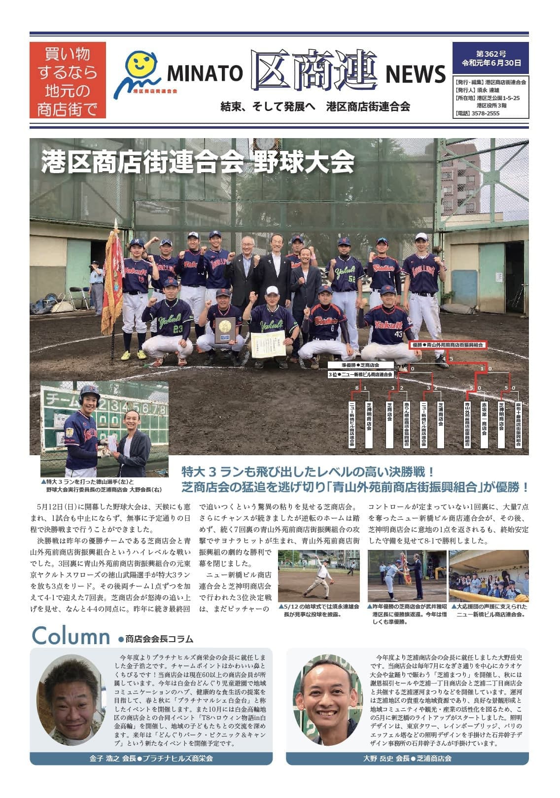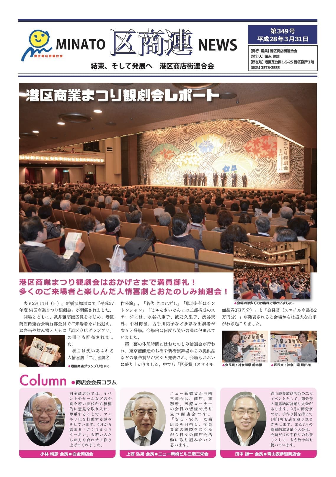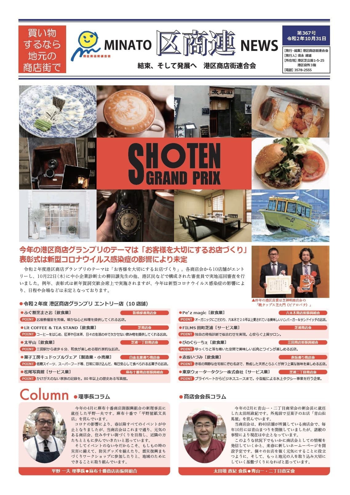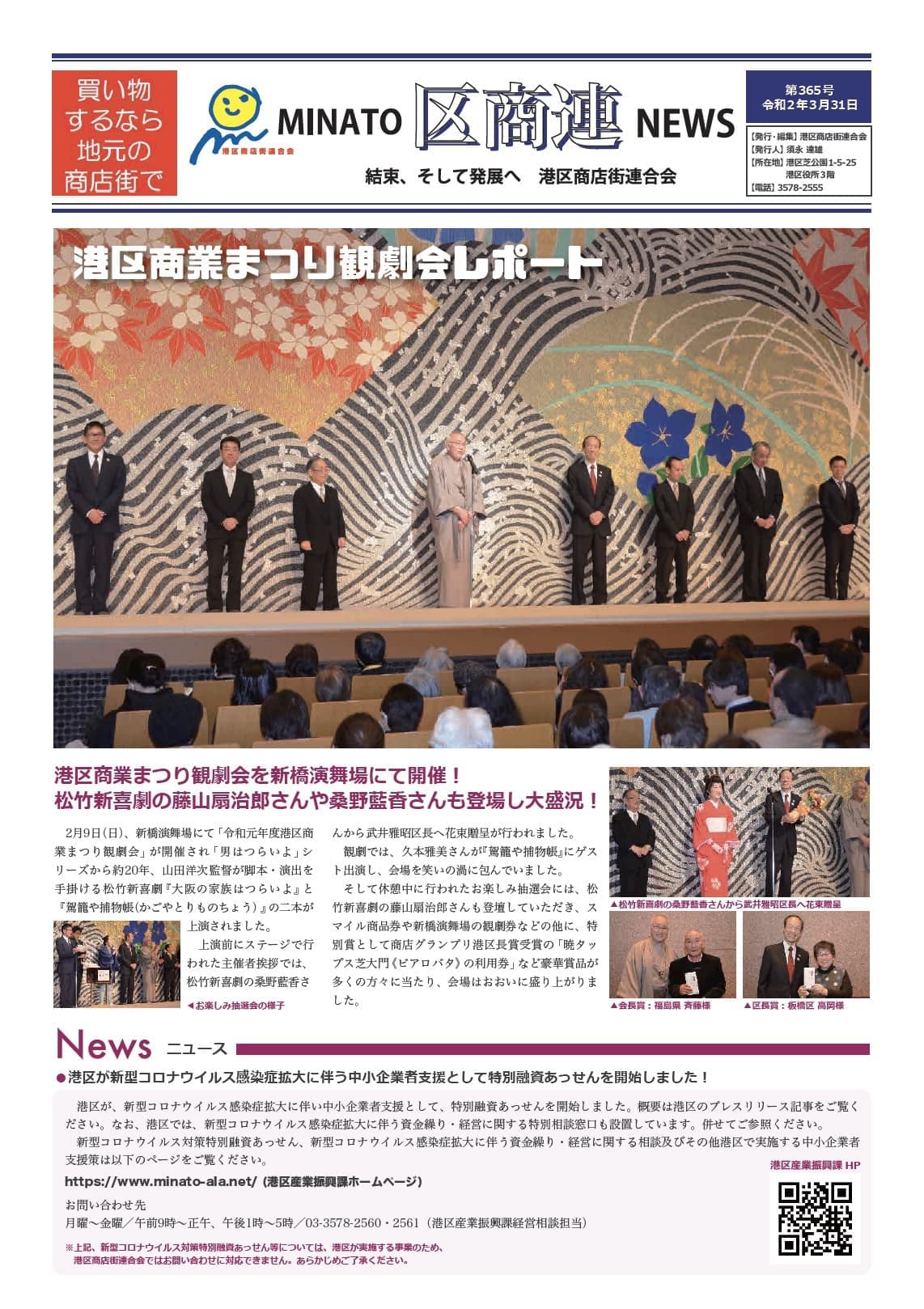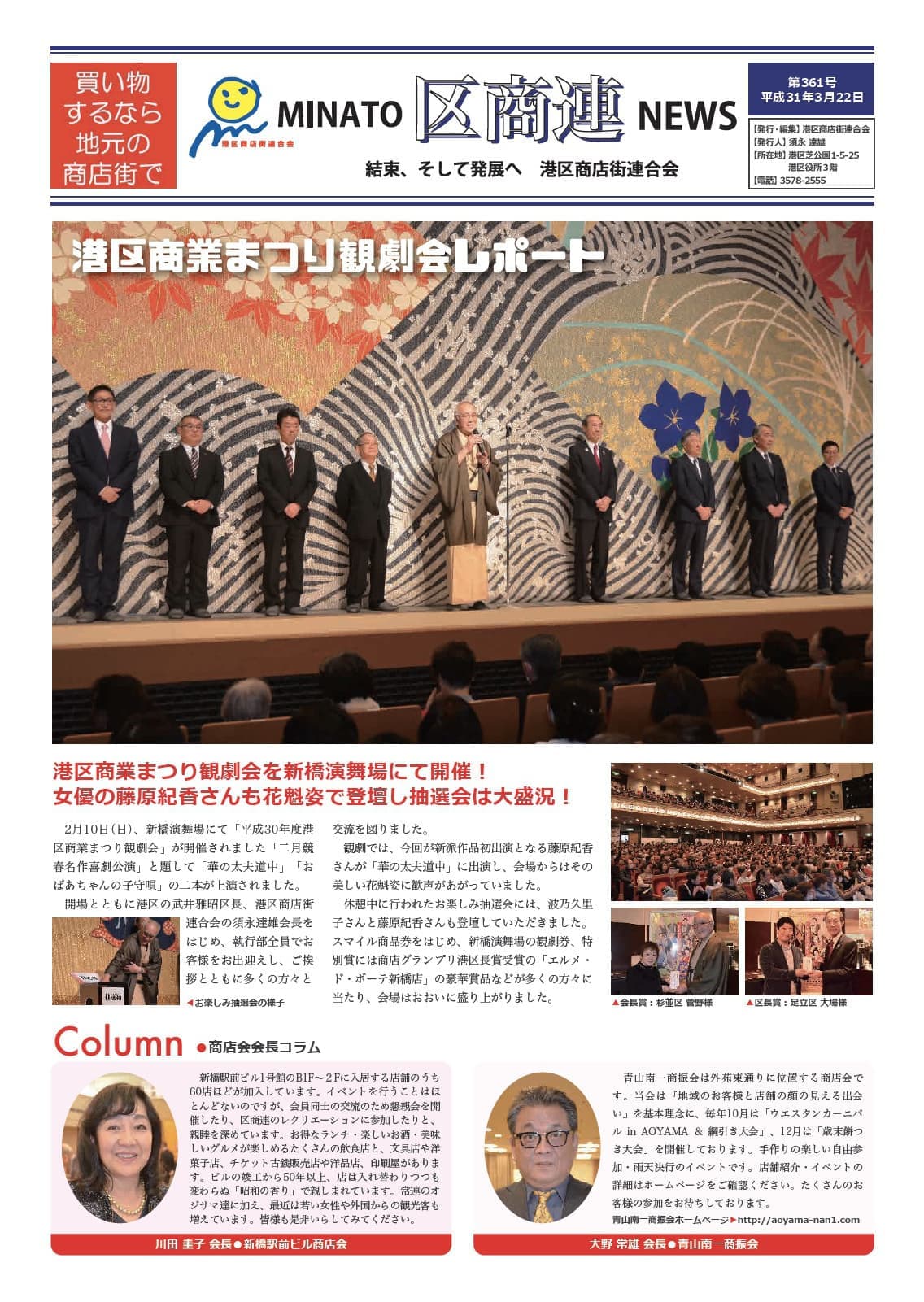 みなと区商連ニュース みなと区商連ニュースは、港区商店街連合会が年3回発行しているコミュニティ誌です。港区商店街連合会の活動をはじめ、各商店会のイベント情報やトピックスなどを掲載しています。 vol.384 2025年6月30日発行 ダウンロード vol.383 2025年1月1日発行 ダウンロード vol.382 2024年10月31日発行 ダウンロード vol.381 2024年6月30日発行 ダウンロード vol.380 2024年1月1日発行 ダウンロード vol.379 2023年10月31日発行 ダウンロード vol.378 2023年6月30日発行 ダウンロード vol.377 2023年3月31日発行 ダウンロード vol.376 2023年1月1日発行 ダウンロード vol.375 2022年10月31日発行 ダウンロード vol.374 2022年6月30日発行 ダウンロード vol.373 2022年3月31日発行 ダウンロード vol.372 2022年1月1日発行 ダウンロード vol.371 2020年10月31日発行 ダウンロード vol.370 2021年6月30日発行 ダウンロード vol.369 2021年3月31日発行 ダウンロード vol.368 2021年1月1日発行 ダウンロード vol.367 2020年10月31日発行 ダウンロード vol.366 2020年6月30日発行 ダウンロード vol.365 2020年3月31日発行 ダウンロード vol.364 2020年1月1日発行 ダウンロード vol.363 2019年10月31日発行 ダウンロード vol.362 2019年6月30日発行 ダウンロード vol.361 2019年3月22日発行 ダウンロード vol.360 2019年1月1日発行 ダウンロード vol.359 2018年10月31日発行 ダウンロード vol.358 2018年6月30日発行 ダウンロード vol.357 2018年3月20日発行 ダウンロード vol.356 2018年1月1日発行 ダウンロード vol.355 2017年10月31日発行 ダウンロード vol.354 2017年6月30日発行 ダウンロード vol.353 2017年3月31日発行 ダウンロード vol.352 2017年1月1日発行 ダウンロード vol.351 2016年10月31日発行 ダウンロード vol.350 2016年6月30日発行 ダウンロード vol.349 2016年3月31日発行 ダウンロード vol.348 2016年1月1日発行 ダウンロード vol.347 2015年10月31日発行 ダウンロード vol.346 2015年6月30日発行 ダウンロード
