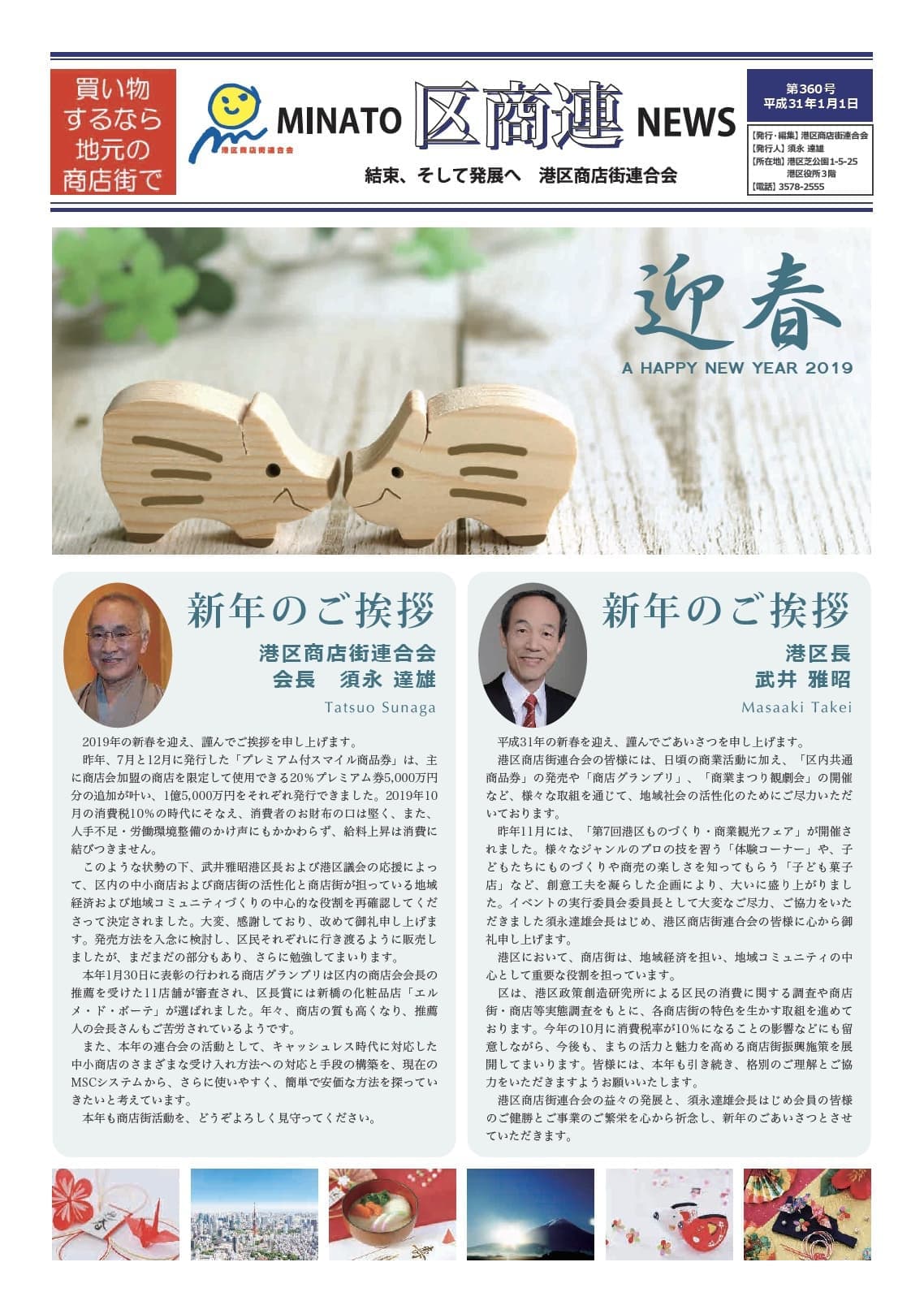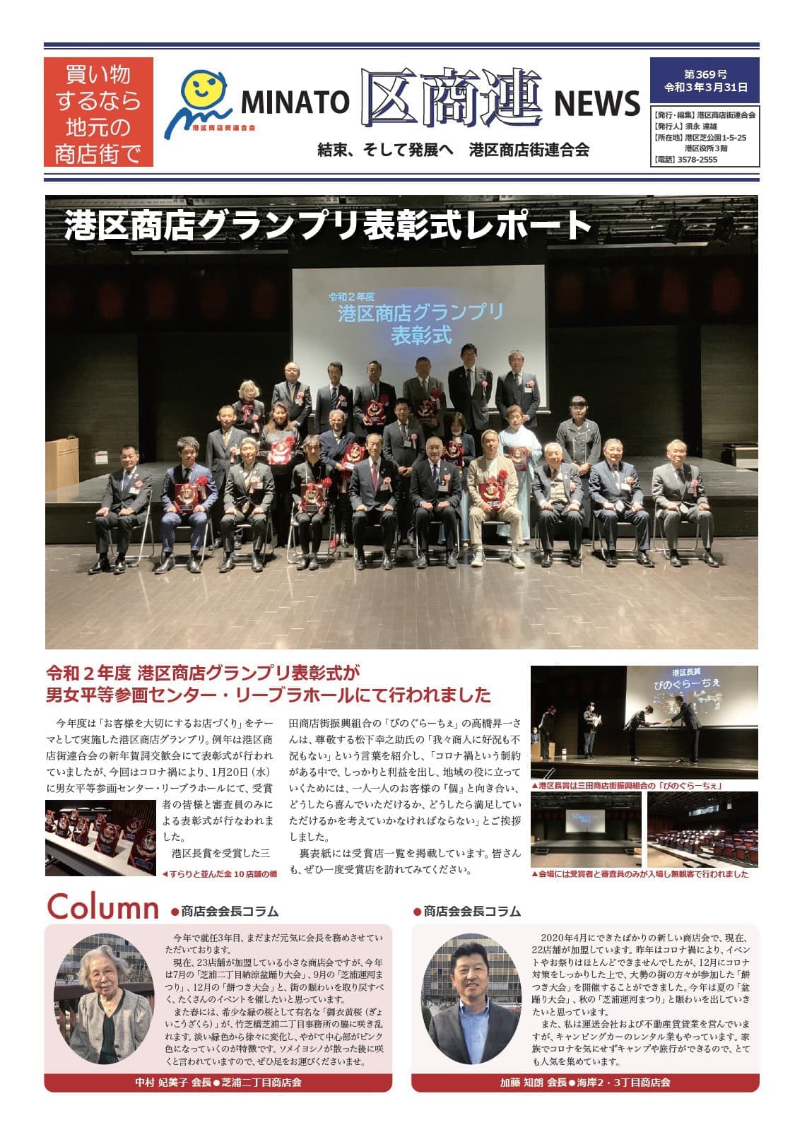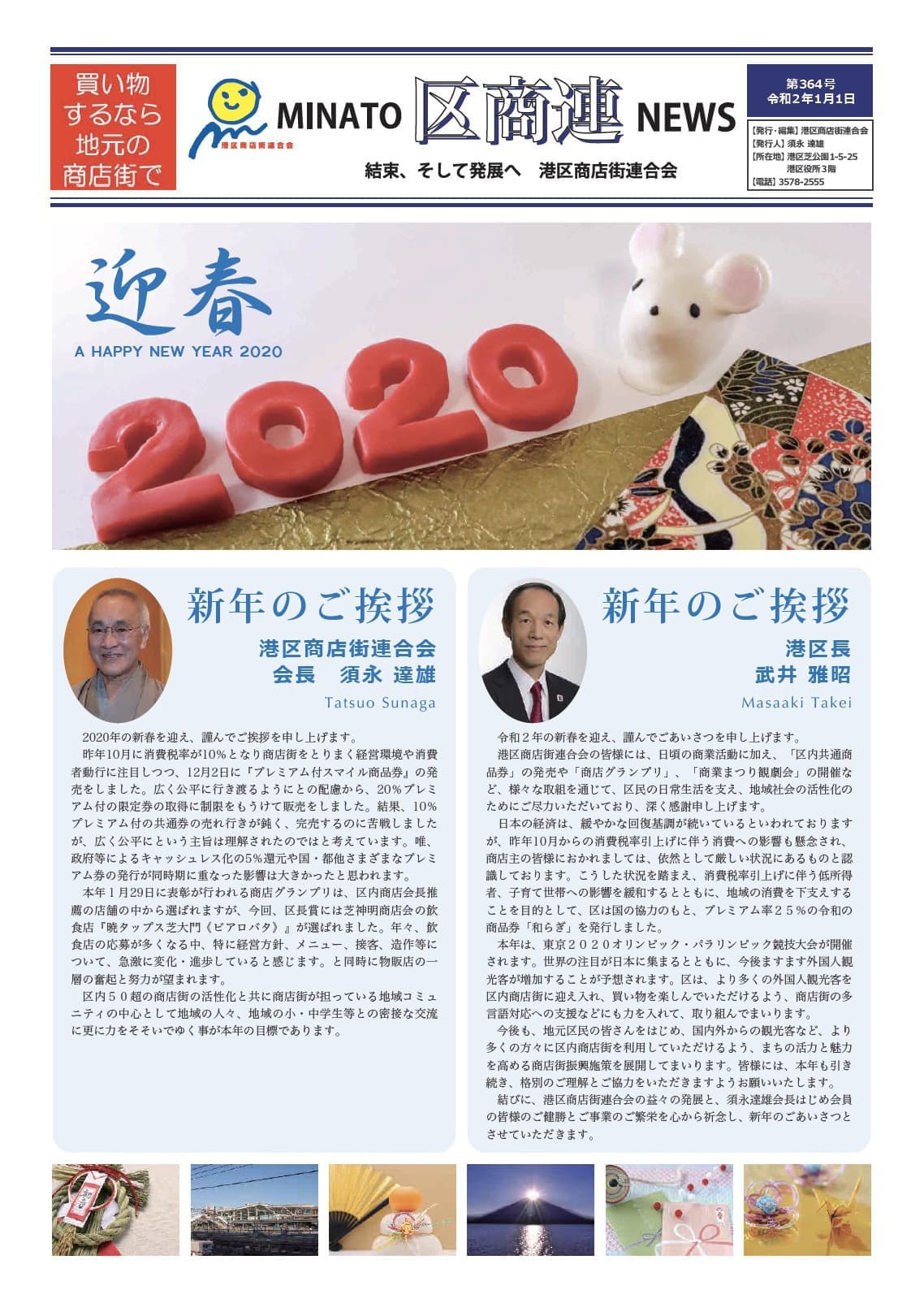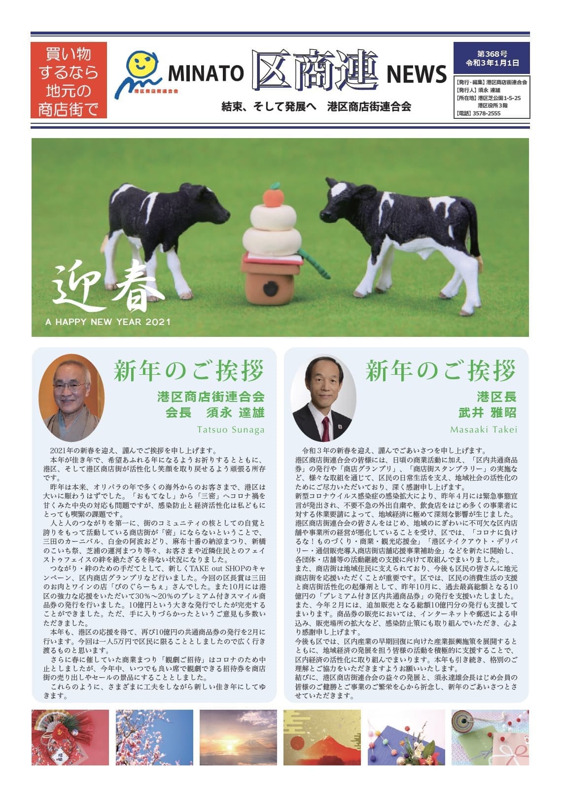 みなと区商連ニュース みなと区商連ニュースは、港区商店街連合会が年3回発行しているコミュニティ誌です。港区商店街連合会の活動をはじめ、各商店会のイベント情報やトピックスなどを掲載しています。 vol.384 2025年6月30日発行 ダウンロード vol.383 2025年1月1日発行 ダウンロード vol.382 2024年10月31日発行 ダウンロード vol.381 2024年6月30日発行 ダウンロード vol.380 2024年1月1日発行 ダウンロード vol.379 2023年10月31日発行 ダウンロード vol.378 2023年6月30日発行 ダウンロード vol.377 2023年3月31日発行 ダウンロード vol.376 2023年1月1日発行 ダウンロード vol.375 2022年10月31日発行 ダウンロード vol.374 2022年6月30日発行 ダウンロード vol.373 2022年3月31日発行 ダウンロード vol.372 2022年1月1日発行 ダウンロード vol.371 2020年10月31日発行 ダウンロード vol.370 2021年6月30日発行 ダウンロード vol.369 2021年3月31日発行 ダウンロード vol.368 2021年1月1日発行 ダウンロード vol.367 2020年10月31日発行 ダウンロード vol.366 2020年6月30日発行 ダウンロード vol.365 2020年3月31日発行 ダウンロード vol.364 2020年1月1日発行 ダウンロード vol.363 2019年10月31日発行 ダウンロード vol.362 2019年6月30日発行 ダウンロード vol.361 2019年3月22日発行 ダウンロード vol.360 2019年1月1日発行 ダウンロード vol.359 2018年10月31日発行 ダウンロード vol.358 2018年6月30日発行 ダウンロード vol.357 2018年3月20日発行 ダウンロード vol.356 2018年1月1日発行 ダウンロード vol.355 2017年10月31日発行 ダウンロード vol.354 2017年6月30日発行 ダウンロード vol.353 2017年3月31日発行 ダウンロード vol.352 2017年1月1日発行 ダウンロード vol.351 2016年10月31日発行 ダウンロード vol.350 2016年6月30日発行 ダウンロード vol.349 2016年3月31日発行 ダウンロード vol.348 2016年1月1日発行 ダウンロード vol.347 2015年10月31日発行 ダウンロード vol.346 2015年6月30日発行 ダウンロード